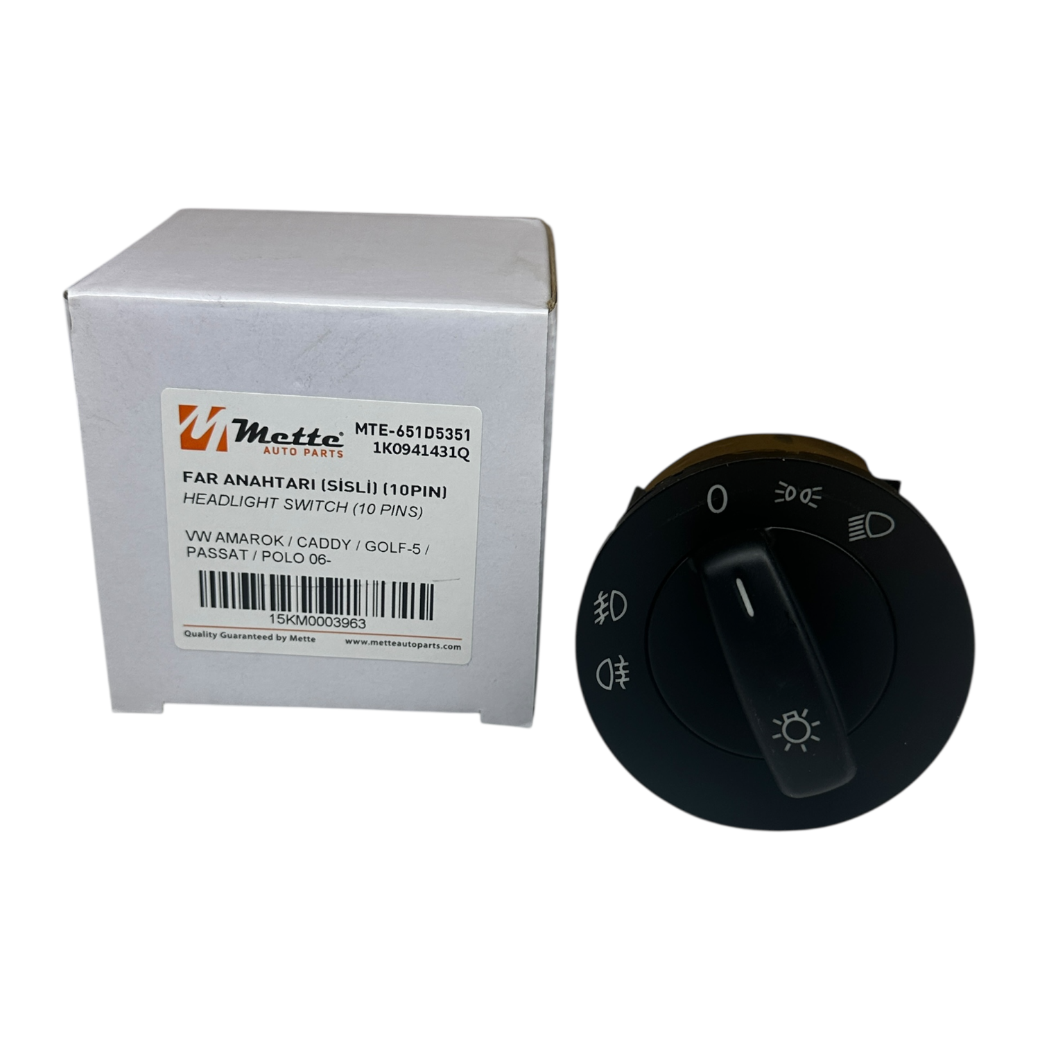 Volkswagen Golf V 2006 Model ve Sonrası Araçlar İçin Uygun Far Anahtarı Mette Markadır.